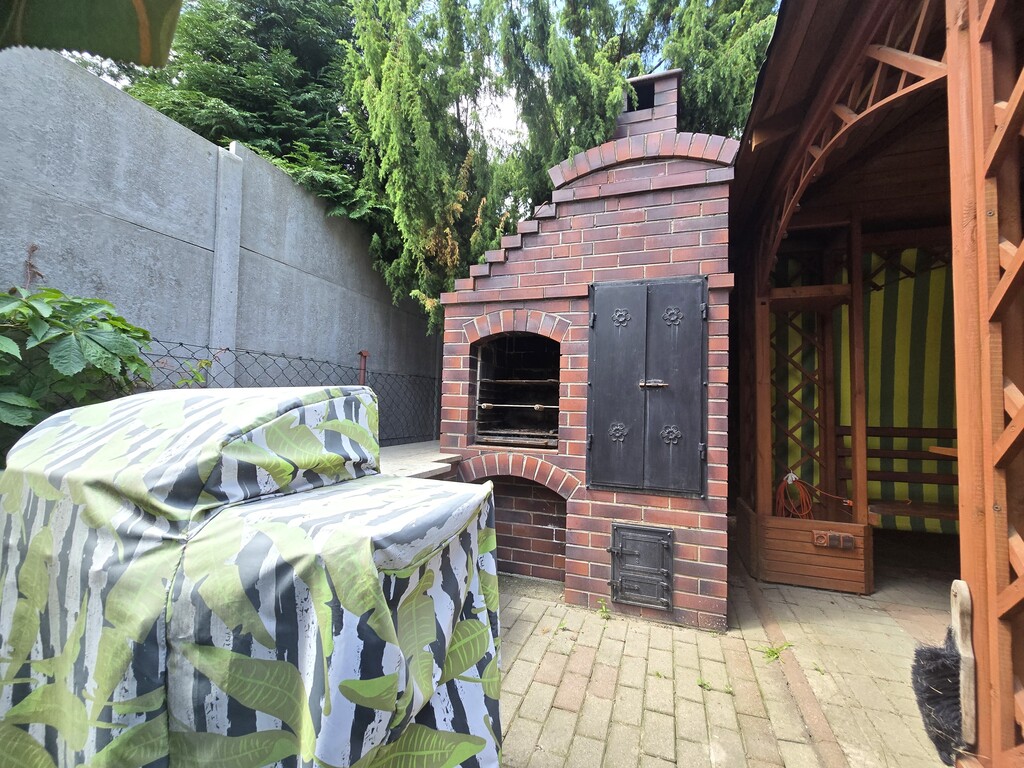 Działka otaczająca dom została zagospodarowana różnorodnymi nasadzeniami, które tworzą prywatny, zielony azyl i idealną przestrzeń do spędzania czasu na świeżym powietrzu. W ogrodzie znajduje się altana oraz wędzarnia z grillem. Nieruchomość łączy w sobie wygodę i funkcjonalność, oferując przy tym przestrzeń do wypoczynku i codziennego życia w komfortowych warunkach.
