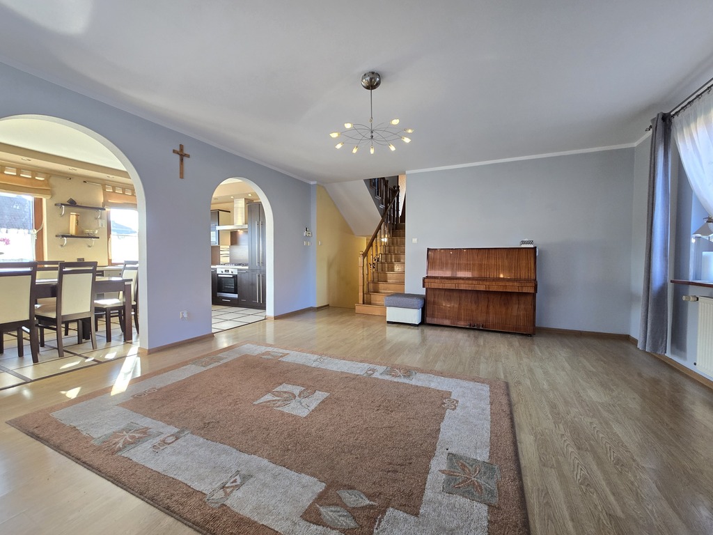 Paluch Nieruchomości oferuję na sprzedaż przestronny i komfortowy dom jednorodzinny w Bolesławcu, wybudowany w 2001 roku. Nieruchomość o przemyślanym układzie oferuje 6 użytkowych pokoi oraz dwóch oddzielnych pokoi gościnnych co czyni ją idealnym miejscem dla dużej rodziny szukającej przestrzeni i wygody. Jasna, dobrze doświetlona kuchnia zachęca do wspólnych posiłków, a dwie funkcjonalne łazienki zapewniają wygodę codziennego życia. W piwnicy domu znajduje się wyjątkowa przestrzeń rekreacyjna – sala do ćwiczeń wyposażona w fińską saunę suchą, idealna do relaksu po intensywnym dniu. Garaż, wkomponowany w bryłę budynku, stanowi wygodne rozwiązanie na codzienne parkowanie.