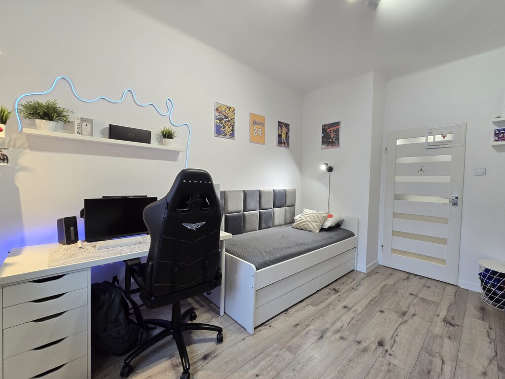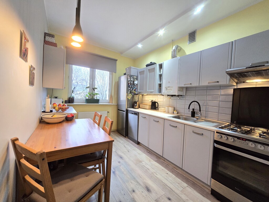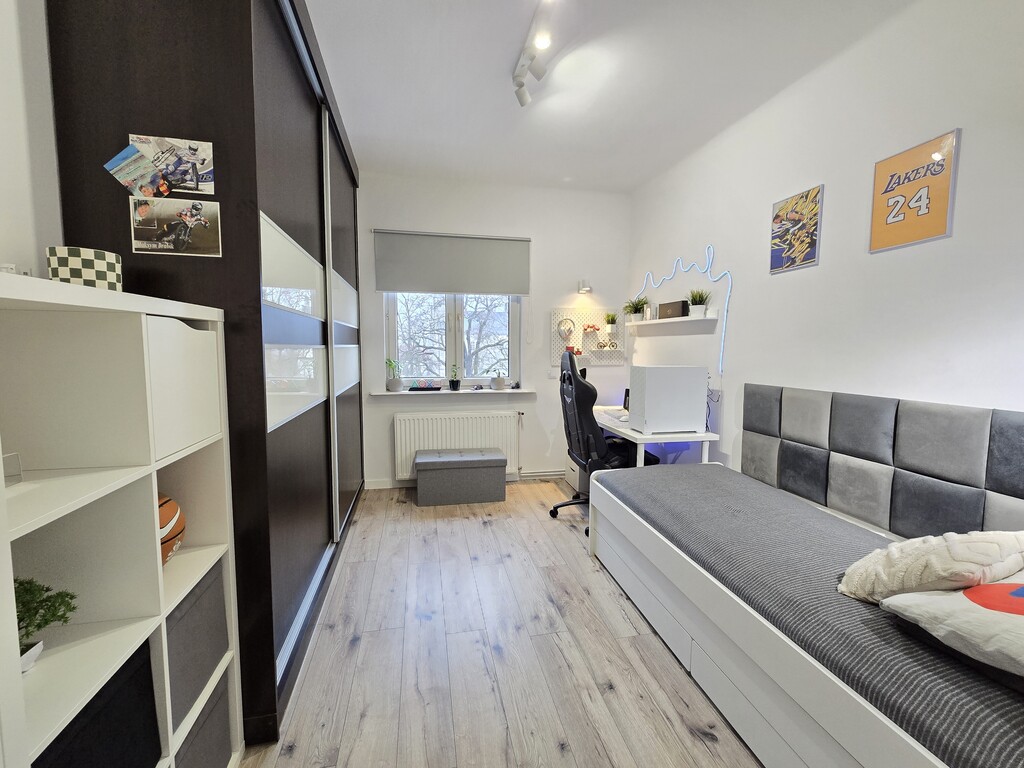 Lokal jest funkcjonalnie rozplanowany i składa się z przestronnego pokoju dziennego, pokoju dziecięcego z pojemną szafą pod zabudowę, oddzielnej i widnej kuchni, praktycznego przedpokoju oraz nowoczesnej łazienki z prysznicem, która przeszła remont 2 lata temu.