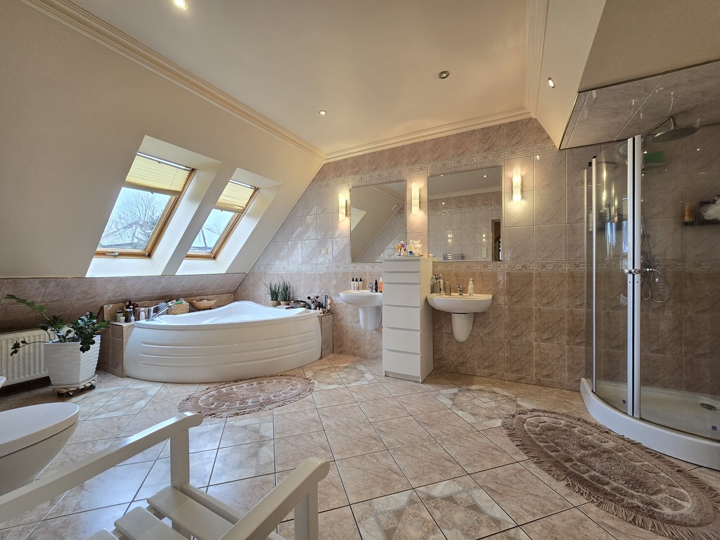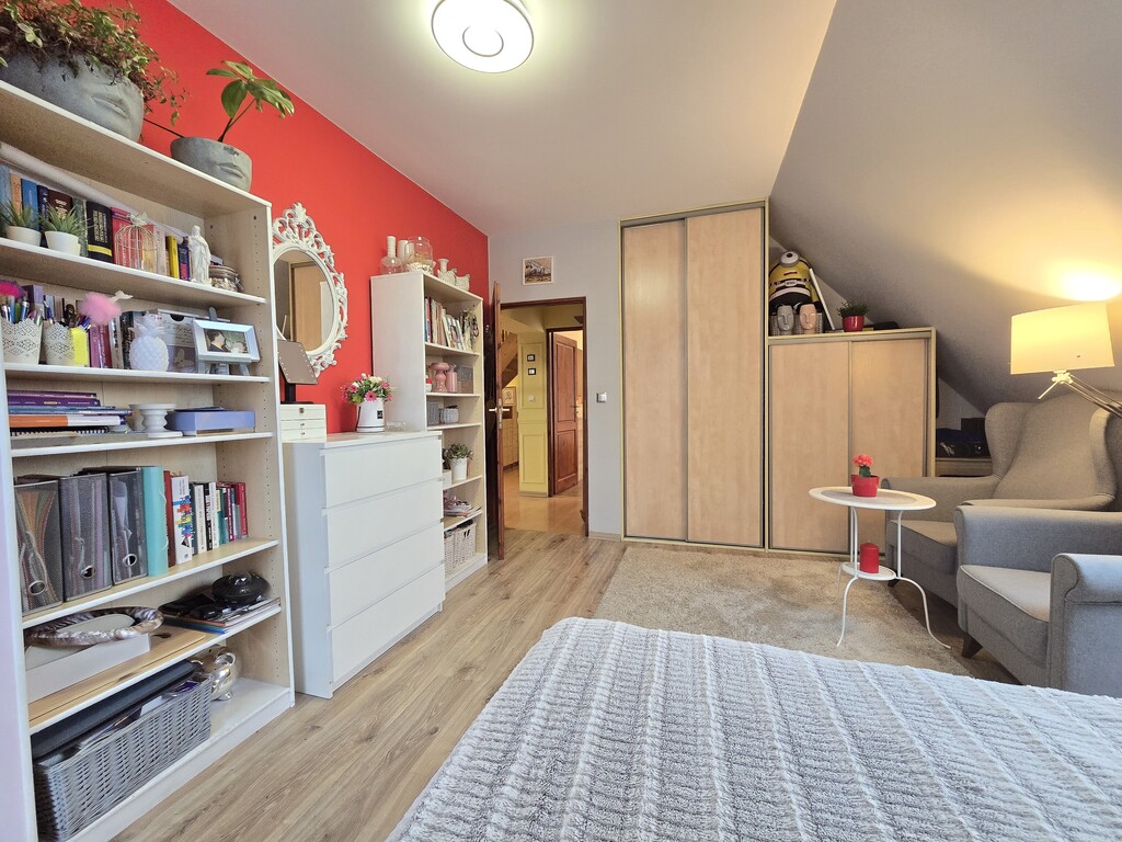 Paluch Nieruchomości zaprasza do zapoznania się z ofertą niezwykłego domu z 2000 roku, położonego w spokojnym i malowniczym miejscu osiedla Kwiatowego w Bolesławcu. Dom zachwyca przestrzenią, funkcjonalnością i przemyślanym układem pomieszczeń. Parter obejmuje słoneczny salon z kominkiem i wyjściem na ogród, oddzielną kuchnię o wyjątkowym klimacie, łazienkę z prysznicem oraz dodatkowe pomieszczenie, które aktualnie pełni funkcję jadalni, lecz może zostać przekształcone według potrzeb – pokój. Na piętrze znajdują się dwa pokoje, sypialnia, przestronna łazienka z wanną narożną i prysznicem, praktyczne pomieszczenie gospodarcze przy łazience oraz kącik relaksacyjny idealny do czytania lub ćwiczeń. Dodatkowo strych został zaadaptowany na dodatkowy pokój z wygodnym wejściem po schodach. Dom posadowiony jest na zadbanej, ogrodzonej działce z pięknym ogrodem, stworzonym z myślą o wypoczynku i relaksie. W bryle budynku znajduje się garaż, a ogrzewanie zapewnia nowoczesny piec gazowy, wciąż objęty gwarancją. Ta nieruchomość to idealna propozycja dla osób ceniących ciszę, komfort i przestrzeń w otoczeniu zieleni, a jednocześnie bliskość miejskiej infrastruktury.